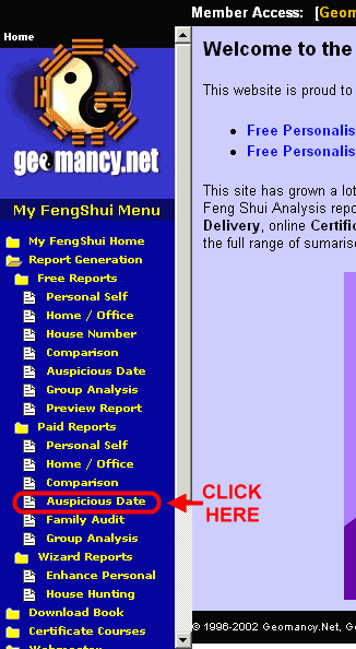 - Click on the Auspicious Date link, which opens up a Report Wizard on the right frame.