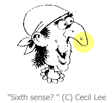 A caricature showing the use of `intuition' or sixth sense:-